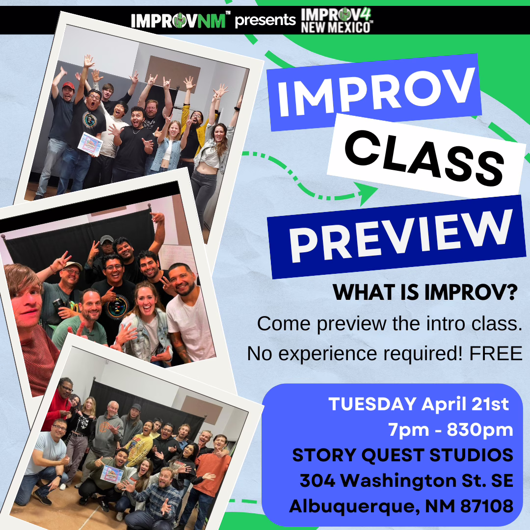 Improv New Mexico™ (Improv NM™) is a 501(c)(3) nonprofit dedicated to making a difference in New Mexico's communities. Since our founding in 2019, we’ve provided improv classes, workshops, and performances in Santa Fe, empowering individuals and supporting local growth. Now, under our new leadership and through our statewide initiative: