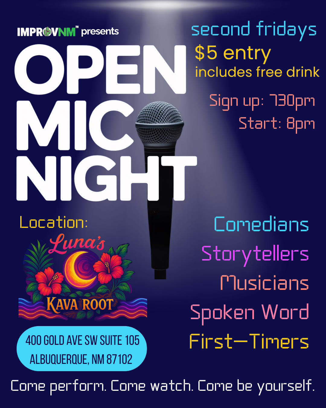 Come perform. Come watch. Come be yourself.